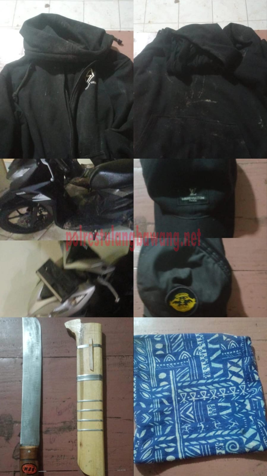 Dalam penangkapan tersebut, polisi turut mengamankan sejumlah barang bukti, antara lain: 1 unit sepeda motor Honda Beat Deluxe warna silver Nopol BE 2674 TK (milik korban), 1 bilah golok yang digunakan pelaku untuk mengancam korban, STNK dan BPKB asli sepeda motor korban, 1 jaket warna hitam, 1 buah penutup wajah, dan 1 topi milik pelaku, 1 unit sepeda motor milik pelaku yang digunakan dalam aksi