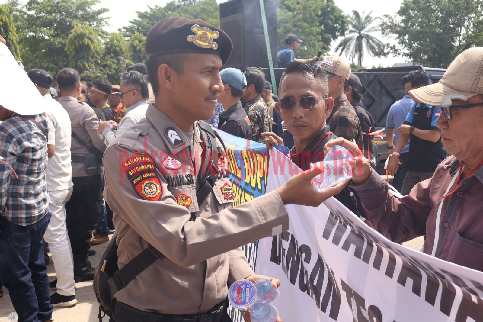 Tulang Bawang – Senin pagi, (15/09/2025) Dalam sebuah momen yang menggugah hati, anggota polisi dari Polres Tulang Bawang terlihat memberikan bantuan kepada warga yang tengah menghadiri aksi demonstrasi. Dengan penuh perhatian, polisi tidak hanya bertugas mengamankan jalannya aksi, tetapi juga memastikan kebutuhan dasar seperti air minum tetap tersedia bagi peserta aksi.