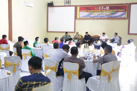 Jelang Pemilu (pemilihan umum) tahun 2019, Polres Tulang Bawang menggelar Diskusi dengan tema Penyelenggaraan Pemilu Aman, Damai dan Sejuk, hari Kamis (28/2), sekira pukul 10.40 WIB, bertempat di GSG (gedung serba guna) Wira Satya Polres setempat.