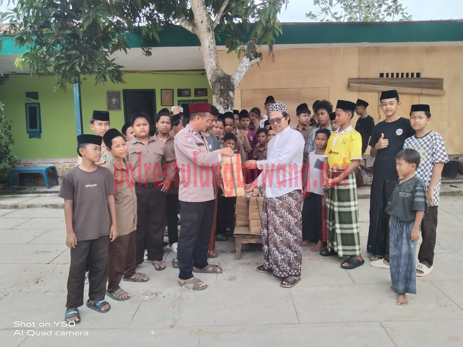 Dalam kegiatan tersebut, Kapolsek Banjar Agung, AKP Irwansyah, S.H., M.H., mewakili Kapolres Tulang Bawang bersama personel Polsek membagikan 50 paket nasi kotak kepada santriwan dan santriwati.
