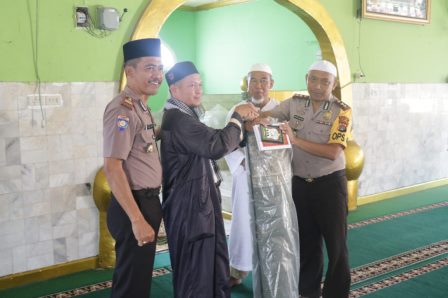 Usai pelaksanaan sholat jumat, Kapolres bersama Kasat Binmas secara simbolis menyerahkan bantuan yang diterima langsung oleh pengurus masjid.