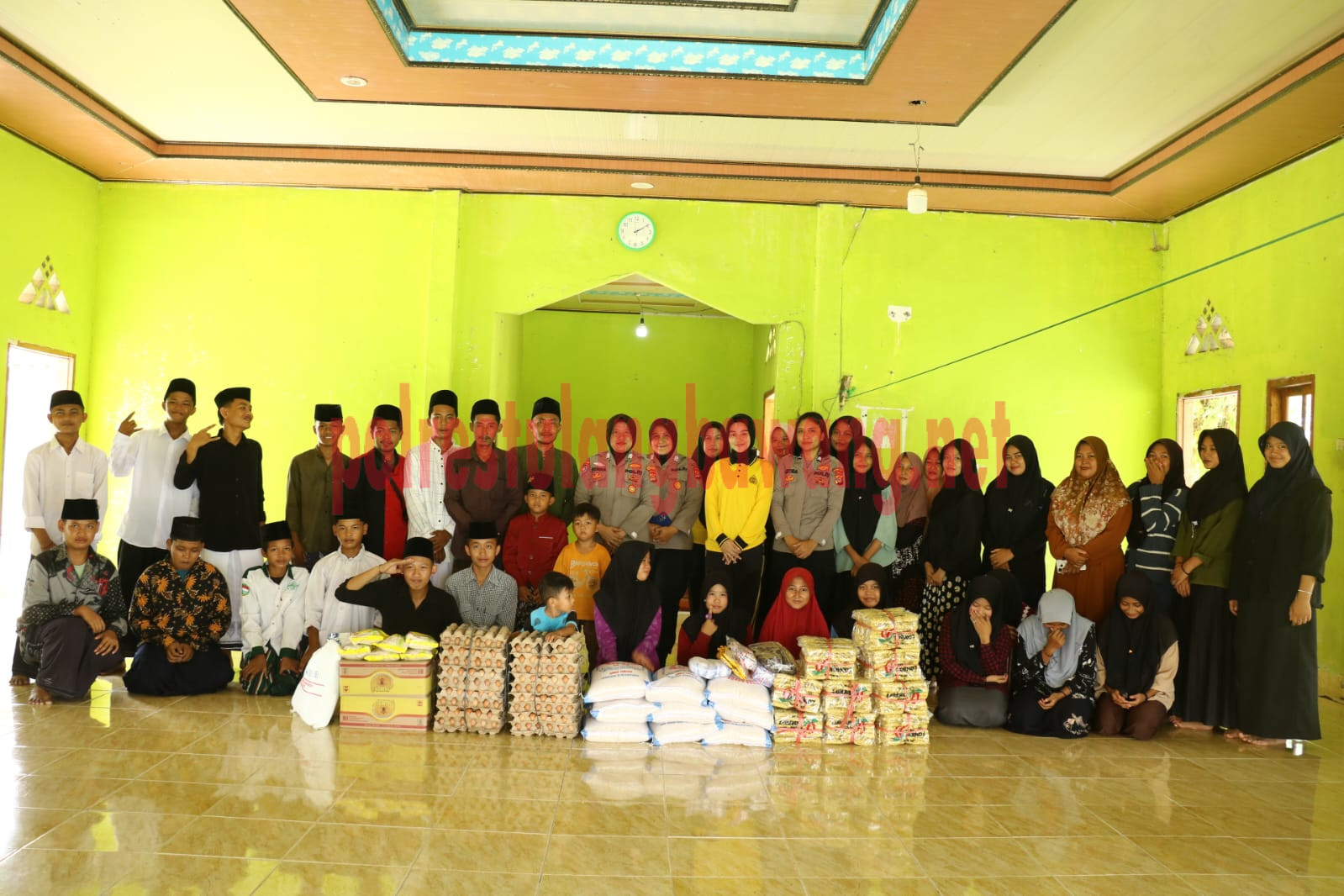 Dalam kesempatan tersebut, Polwan Polres Tulang Bawang memberikan bantuan sosial berupa sembako dan perlengkapan kebutuhan sehari-hari kepada pihak pondok pesantren sebagai bentuk dukungan Polri terhadap dunia pendidikan dan keagamaan.